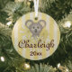 La conception du produit comprend un koala bébé entouré de fleurs. L'adorable bande dessinée animale à rayures jaunes fait un joli ornement de verre unique avec texte personnalisé pour les garçons et les filles.