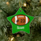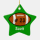 L'ornement de Noël de football sur mesure fait dans un ornement en étoile verte, avec le nom en blanc et le numéro de maillot en noir sur une icône de football. Personnalisez le nom ou le texte en fonction de vos besoins. Fait un joli ornement pour les enfants ou votre joueur de football vedette.