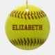 Boule faite sur commande de jaune d'ornement de boule du base-ball avec le texte brun que vous pouvez personnaliser avec votre propre nom. Cadeau parfait au joueur de base-ball