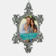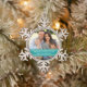 Décoration de vacances de famille avec le texte personnalisable et un endroit pour ajouter votre propre photo de famille spéciale dans le bleu et le blanc de turquoise turquoise élégant. Le cadeau personnalisé parfait cette saison des vacances ou un souvenir prisé de famille.