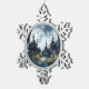 Ornement Flocon De Neige Aquarelle Vue nocturne avec grande lune