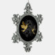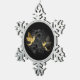 Colibris de bijoux en noir et or sur arrière - plan gris décoré de plantes. Bijoux. Oiseau doré. Oiseau d'or.