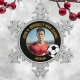 This cool customized high school soccer player photo gift features gold typography of your team and player name on a black Christmas ornament with a soccer ball. Personalize with your student's photograph and class year as a proud futbol parent for a commemorative keepsake.