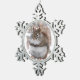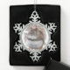 Cet ornement de vacances d'étain comporte un écureuil rouge doux dans la neige blanche pelucheuse. Sa fourrure est brune et blanc. Ne semblera-t-elle pas pendre adorable de votre arbre de Noël ?