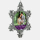Élégant script de calligraphie Notre première photo de Noël Ornement de flocon de neige violet - Parfait pour une photo Mariage ou une photo en couple