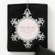 Enregistrez la date, script personnalisé texte Mariage Faire-part Flocon de neige Ornement de Noël de l'ewter Pewter. Élégant ornement de texte rose vif et faux or.