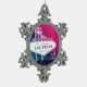 Belle illustration du panneau de Las Vegas + silhouettes de palmiers + étoiles scintillantes + rose chaud et vert mer arrière - plan illustrée sur des ornements personnalisés en Pewter. Un cadeau ou un souvenir mémorable de votre fête spéciale Las Vegas mariage, fiançailles ou anniversaire! Tous les exemples de texte peuvent être entièrement customisés avec votre propre libellé. (Vous pouvez trouver les essentiels et les faveurs mariages correspondants dans ce magasin, le paradis nuptial. Contactez ujean4791@gmail.com pour un travail personnalisé et/ou la coordination de la papeterie mariage.))