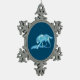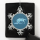 Un loup bleu stylisé (Canis lupus) projette une ombre en traversant un terrain enneigé.