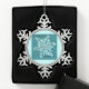 Ornement de flocon de neige d'étain. Customisez le visage de l'ornement avec vos photos, images et texte préférés pour créer un souvenir inestimable. Le visage personnalisable imprimé dans polychrome sur 1,625" ornement plat d'étain en aluminium d'insertion avec le fil accrochant argenté dimensionne : 3" h X 3" W X .125" d