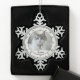 Ajoutez une touche de charme classique à votre décoration de vacances avec cet ornement en forme de flocon de neige avec photo de chat noir et blanc ! Avec son motif de nœud coquet dessiné à la main dans des tons intemporels de noir et de blanc, ce design apporte une touche chic et moderne à votre arbre de Noël. La délicate forme de flocon de neige encadre joliment la photo de votre chat, ce qui en fait un objet de collection parfait pour les amoureux des animaux.