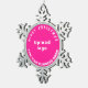 Joyeux Noël! Ornement de flocon de neige avec Joyeux textes de voeux de Noël, votre nom d'entreprise ou de compagnie et logo. Le design est des textes blancs sur arrière - plan rose. Ornement pour décorer le sapin de Noël dans votre magasin, magasin ou bureau. Ornement pour accueillir visuellement vos clients cette saison de vacances et pour annoncer votre entreprise ou promouvoir votre marque. Customisez-le et utilisez-le pour sensibiliser la marque. Veuillez vérifier l'apparence après avoir téléchargé le logo et tapé votre nom d'entreprise. Si l'apparence vous plaît, vous pouvez passer votre commande maintenant. Si vous avez besoin de redimensionner et déplacer le logo et les textes pour s'adapter à cet ornement ou à d'autres styles que vous choisirez, s'il vous plaît changer dans l'outil de conception. Vous pouvez également effectuer d'autres modifications en fonction de vos préférences dans l'outil de conception, comme changer la couleur arrière - plan, la couleur de police et le style de police. Joyeux Noël! Je vous souhaite plus de ventes cette saison des Fêtes.