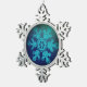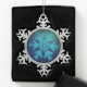 Un joli graphisme de flocon de neige en bleu aqua sur un arrière - plan bleu foncé avec une pointe de vert. Une vignette noire la complète. Je pense que c'est drôle.