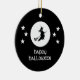 Éposez un sort avec cet Ornement d'Halloween charmant mais simple, avec une pleine lune et des étoiles derrière une sorcière volante. Cet ornement d'Halloween amusant serait un objet de décoration magiquement chic ou de conservation. Facile à customiser, ajoutez simplement votre propre texte dans les champs fournis. Les polices et les couleurs de texte peuvent être modifiées en cliquant sur le bouton "Customiser".