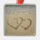 Ornement Métallique Deux coeurs sus-jacents dessinés sur la plage