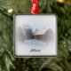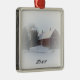 Customisez l'ornement rouge de grange de Noël avec du charme de pays avec l'année en cours pour créer un cadeau customisé de stuffer de bas de pays, d'hôtesse de cadeau de Noël ou de vacances. Cet ornement de Noël de coutume comporte une photographie étrange de ferme d'hiver d'une grange et d'un silo rouges couverts de neige blanche.