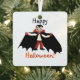 Ornement avec mon oeuvre 3d d'un petit personnage de vampire essayant de paraître effrayant, avec le texte personnalisable "Happy Halloween !"