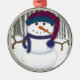 Puffy le bonhomme de neige est préparé pour la première chute de neige de la saison hivernale. Il est décoré dans son casquette et son foulard coloré et moelleux.