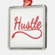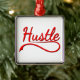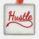 Le mot "hustle" en rouge avec des ombres tombantes en noir. Design original.