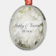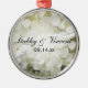 L'élégant Ornement Mariage Blanc Hydrangea peut être personnalisé avec les noms de la date de la mariée, du marié et de la cérémonie de mariage. Cet ornement botanique nuptial traditionnel et élégant présente une photo florale d'un gros plan d'une fleur d'hydrangée blanche.