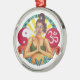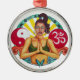 Art original de Sandra Gale sur un ornement rond affichant un design inspirant avec le signe pour ohm, yin-yang, et d'autres avec une belle femme méditant. Un design unique et coloré de spiritualité qui est parfait pour tous.