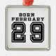 Texte Born Février and a large number 29. Prints, poison, t-shirts for fun and good mood. Leap year theme. Square and round products