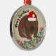 Baby wombat de Noël portant un chapeau santa et un ornement délicat de fleurs de gomme. Customisez le texte.