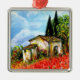 Paysage toscan, coloré, vibrant, beauté expressive de la campagne italienne et champs de pavot rouge, belle flore estivale en vert clair, jaune, marron, bleu, couleurs blanches, prés, champs de fleurs, cyprès et oliviers, ancienne ferme rustique sous le ciel bleu et les nuages blancs.Peinture acrylique sur toile.