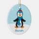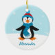 Un ornement adorable avec le pingouin mignon, il utilise un casquette de rouge bleu et une écharpe bleue. Éclairez vers le haut des vacances avec cet ornement adorable. Quelques graphiques : par conception de Prettygrafik