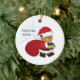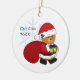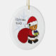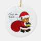 Ornement mignon et personnalisable de Noël comportant cet ours de nounours adorable de Père Noël. Il est tout prêt dans son manteau rouge, casquette, bottes, et porte son grand sac des cadeaux ! Customisez le texte comme vous voulez, ou effacez-le. Dégrossissent deux expositions un arbre décoré avec les cadeaux et le texte plus personnalisable.