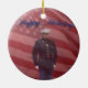 Customisez facilement cette fête militaire de Joyeux Vacances avec un texte pour vos amis, votre famille ou vos proches. Un soldat fier se tient debout devant notre drapeau américain agitant.