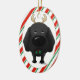 Grand ornement humoristique de Noël de labrador retriever de nez. Le laboratoire noir est dans des andouillers et gui de se tenir dans sa bouche.
