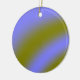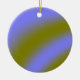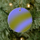 Cet ornement présente une image numériquement créée composée d'une série de bandes de couleur bleu et vert flou ondulées alternant le bleu et le vert qui ressemblent à une série de bandes fluorescentes de nuages.