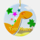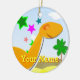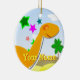Ornement orange de dinosaure de bande dessinée avec le nom. Un petit Diplodocus mignon de dinosaure de bande dessinée avec le paysage, les arbres, les montagnes et le vulcano d'âge de pierre avec la couleur tient le premier rôle l'ornement avec personnalisable votre nom là-dessus. Cet article est entièrement personnalisable, ajoute vos textes et images ! Un grand ornement de dinosaure pour la grande petite fan de dinosaure !
