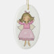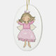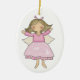 Adorable ornement ovale avec l'oeuvre primitive de campagne d'une fille ange portant une robe rose. Grand ornement d'arbre de Noël que tout le monde appréciera. Commencez une collection de tous nos ornements spéciaux pour petites filles ailées.