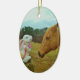 Ornement Ovale En Céramique Blond Jaune cheval & Bunny de Pâques