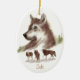 Ornement Ovale En Céramique Carton personnalisé, Aquarelle Loups & Wolf
