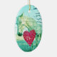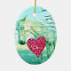 Ornement Ovale En Céramique Cheval Blanc Coeur Rouge Saint Valentin