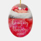 Ornement Ovale En Céramique Compter nos Bénédictions Photo Aquarelle Noël