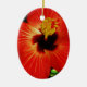 Ornement Ovale En Céramique Fleur d'Hibiscus rouge-orange
