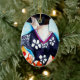 Ornement Ovale En Céramique Geisha avec kimono bleu foncé art original