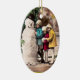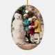 ORNEMENT OVALE EN CÉRAMIQUE LES ENFANTS AVEC LA NEIGE