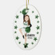 Ornement Ovale En Céramique Vert et blanc de peloton de Pom de brune