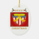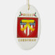 Un beau coeur patriotique américain à double face, avec ornement en céramique ovale ruban jaune. Cet ornement est doté d'un coeur patriotique, il est coloré en rouge blanc et bleu, et a un design étoiles et rayures pour faire référence au drapeau américain. Le coeur a aussi une garniture dorée, et un gros soutien jaune au ruban des troupes sur le dessus. Le coeur est sur un regard brillant arrière - plan rouge. L'ornement lit Joyeux Noël dans une belle lettre dorée avec des saints et des baies sur le dessus! Cette oeuvre d'art numérique unique est affichée à la fois sur l'avant et sur l'arrière de l'ornement. Un beau ornement pour soutenir les troupes, pour les amis et la famille, un grand ajout à toute collection de décorations, un grand cadeau pour un vétéran ou quelqu'un actuellement en service dans l'armée américaine, ou un collectionneur patriotique. Ce design est disponible sur différentes formes et styles d'ornements et d'autres cadeaux merveilleux aussi. Pour plus de styles d'ornements de Noël militaire, cadeaux, autocollants, étiquettes, cartes, timbres et bien plus encore, visitez notre magasin!