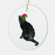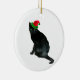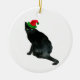 Un chat noir porte un casquette Père Noël rouge et vert ce joli ornement de vacances.