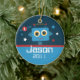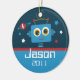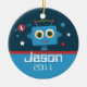 Petit ęr ornement d'anniversaire personnalisé par robot mignon. En comportant un petit robot mignon dirigez avec les yeux et les antennes géants sur sa tête. Entouré par des étoiles et une planète rouge avec le numéro 1. personnalisez-le avec le nom et l'anniversaire de votre enfant ou celui que vous aimez ! Original de PinkInkArt !