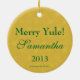 Cerf adorable dans une couronne Yule ornement céramique ronde Yule. Le devant de ce joli ornement à double face présente un renne de dessin animé amusant qui se balade la tête au milieu d'une couronne de vacances colorée et décorée de lumière. Le dos de la décoration dit Joyeux Yule. Il est également prêt pour votre personnalisation avec un nom et l'année dans l'espace modèle fourni facile d'utilisation. Un joli complément à votre collection de vêtements de vacances ou comme cadeau pour la famille, les amis et les enfants aussi! Pour plus d'ornements d'art numérique uniques, visitez notre boutique !