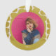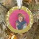 Formes modes Abstraites, ornement photo de vacances personnalisé. Couleurs festives de fantaisies rustiques jaune et faux or avec cadre photo rond unique et ligne de texte pour l'année.
