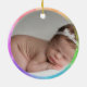 L'Ornement en céramique avec Nounours est prêt à être personnalisé avec le nom et la date de naissance de votre enfant, plus télécharger votre photo sur le dos.