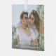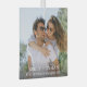 Ornement photo de Noël | Fiançailles moderne personnalisé minimal Photo moderne Couple Noël Ornement de Noël moderne. Un élégant couple fiançailles moderne modèle photo avec un texte simple pour customiser l'ornement avec le nom du couple et l'année du fiançailles. Contactez-moi à l'adresse truullc@gmail.com pour obtenir des produits correspondants ou de l'aide pour passer des commandes. Parfait cadeau de vacances, de fiançailles ou de mariage pour le couple marié.