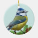 Photo d'oiseau bleu et jaune personnalisée sur ornement bleu clair. Idéal pour tous !
